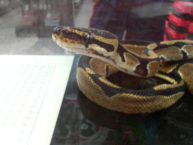 ボールパイソンですが、まだ赤ちゃんのようで非常におとなしかったです。